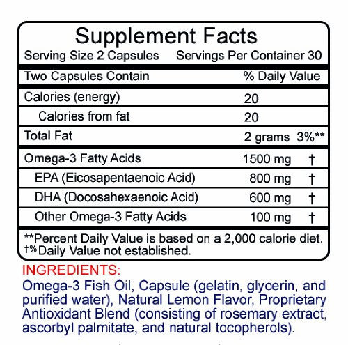 - ✔** ORDER NOW AND SAVE 50% OFF! THIS IS LIMITED TIME OFFER!! ✔ ** MAXIMUM STRENGTH - 1500 mg Omega 3 Fatty Acids per serving - 800 mg EPA & 600 mg DHA. (3 times the essential fatty acids of regular fish oil). Manufactured in the USA in a GMP certified facility. Made with premium Norwegian Fish Oil.